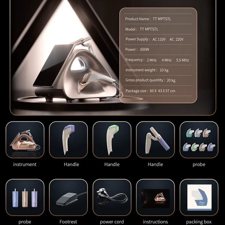 El instrumento utiliza un sistema ultrasónico ultramicropulsado para cambiar la energía instantánea bidireccional del pulso acústico lineal transversal y la onda acústica anular. con efectos precisos, cómodos, rápidos y duraderos. En el modo MP, el modo de transmisión de energía en microsegundos tiene puntos de enfoque más pequeños y densos que otros instrumentos, mayor seguridad, experiencia cómoda, período de recuperación más corto, distribución de puntos más uniforme y más eficiente.